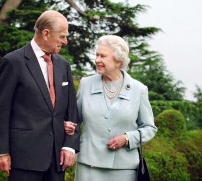 Rainha britânica elizabeth e seu marido, príncipe philip, em retrato oficial de comemoração do 73º aniversário de casamento.
